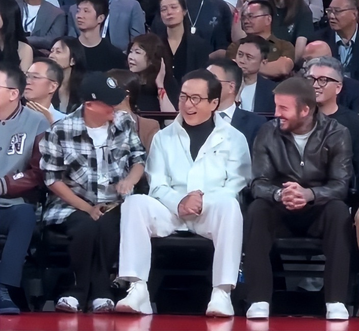 这次他和成龙、贝克汉姆还有蔡崇信坐在一起,边看边和成龙热聊,看激动了还拍成龙大哥的腿,给网友都看笑了。